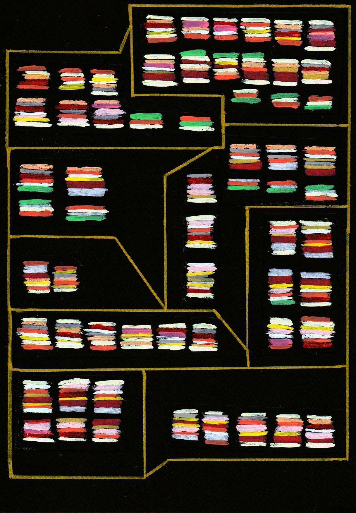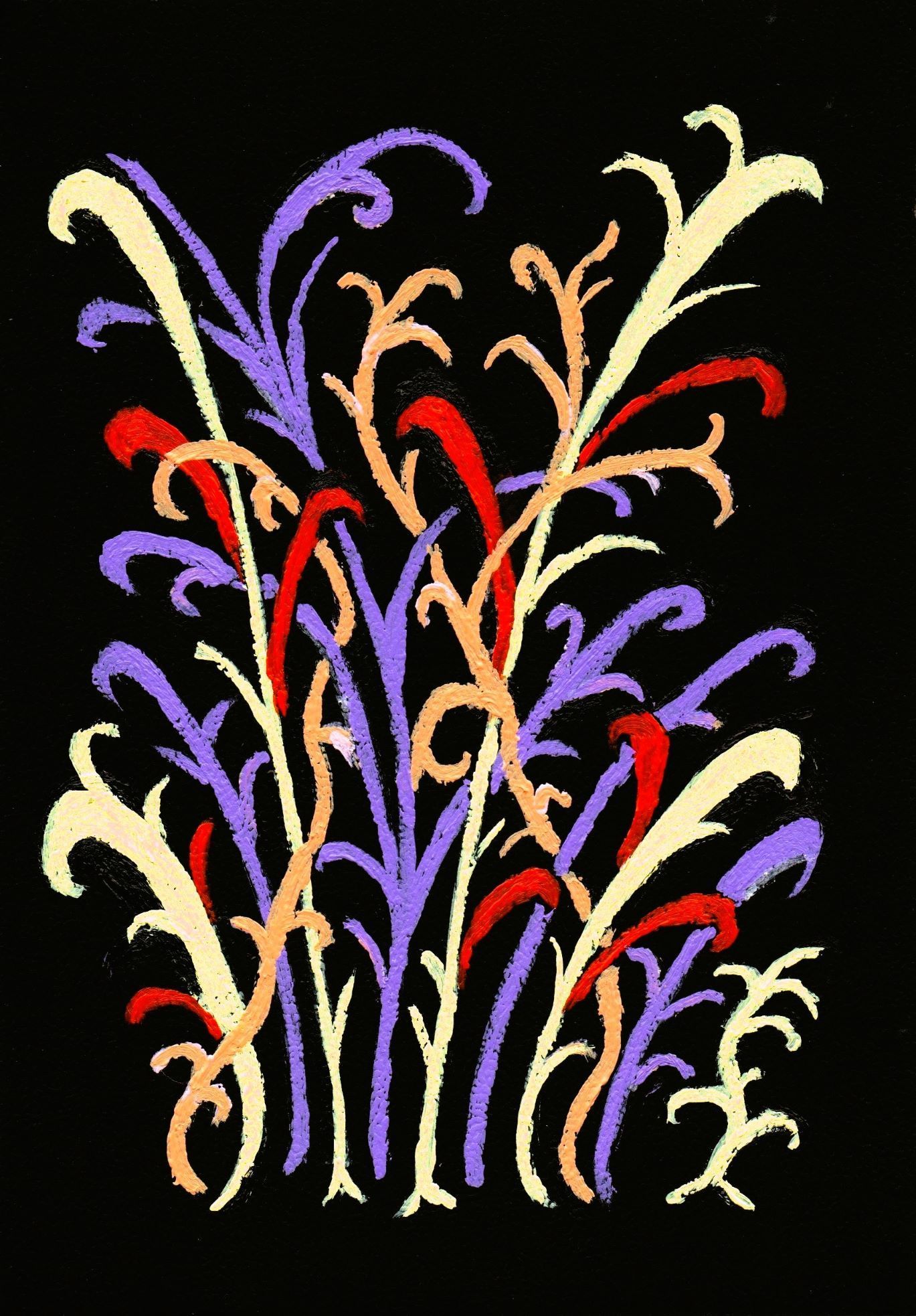 Alles ist ein bisschen duster und undurchsichtig. Acrylfarbe auf braunem Papier. DIN A5