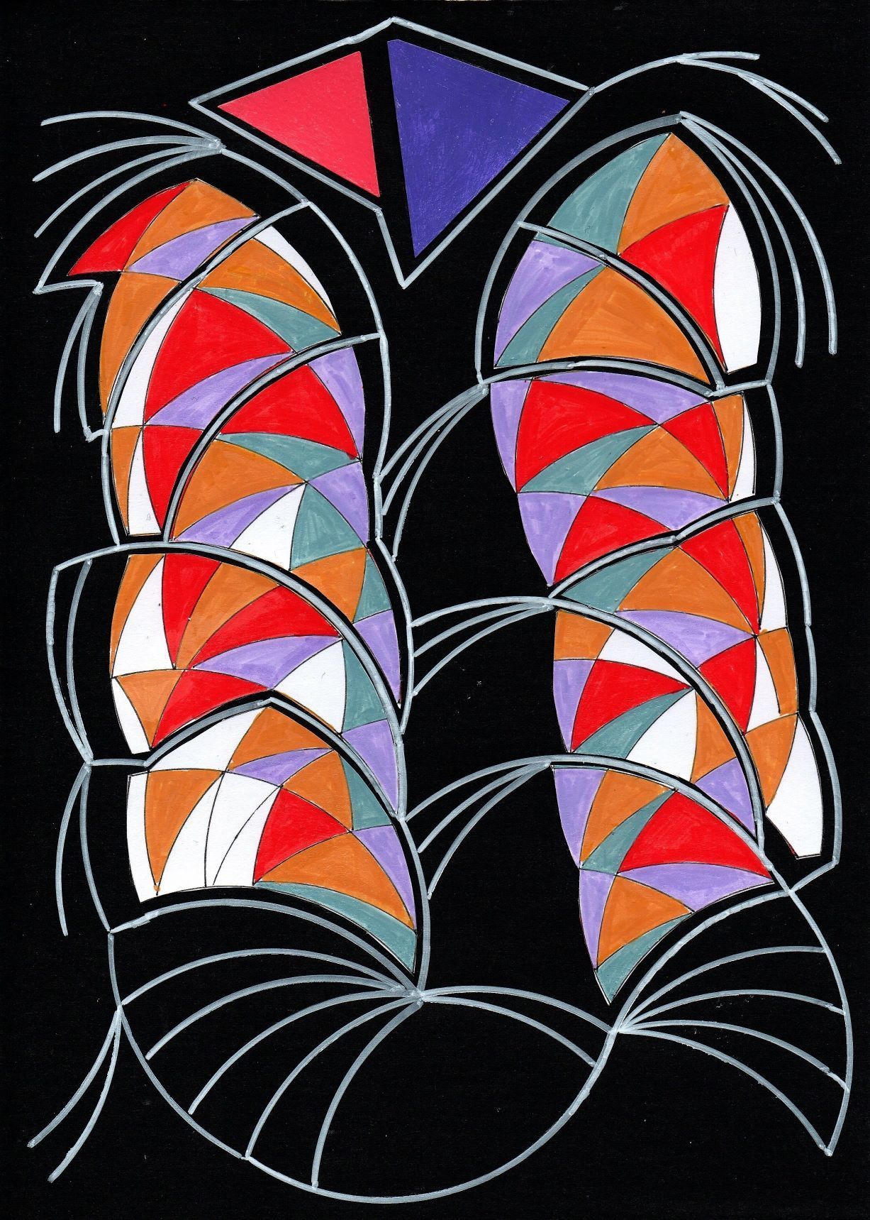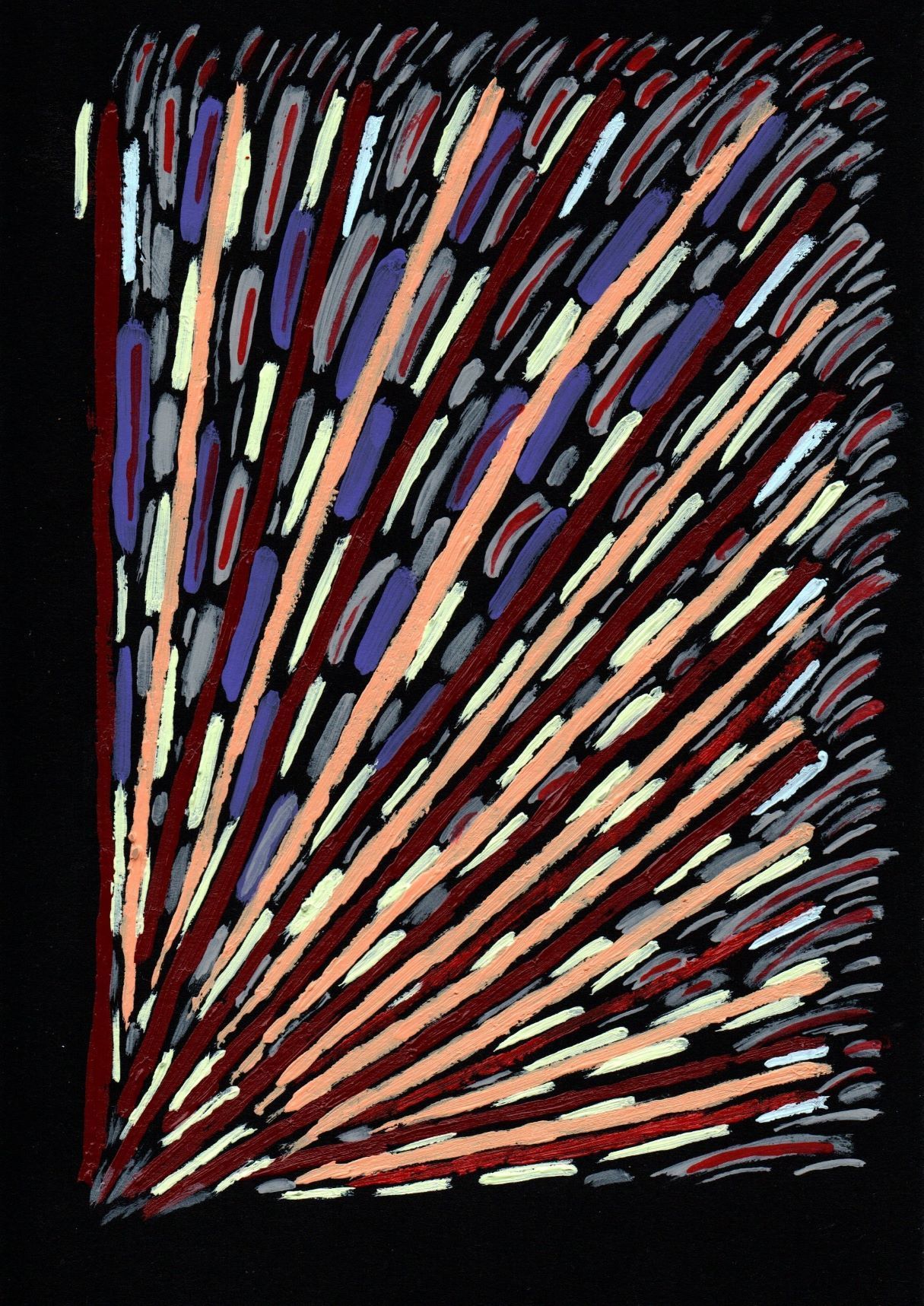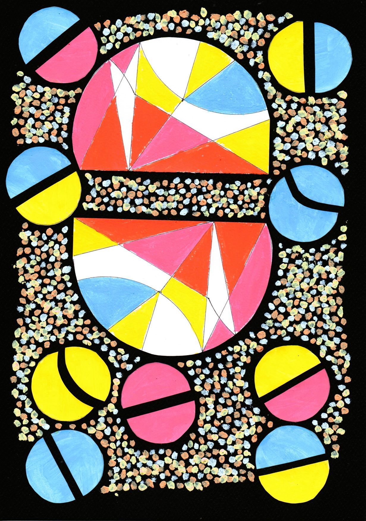 Acrylfarbe,-stifte und mit Fineliner nach eigener Fantasie gemalt auf DIN A5 Papier.