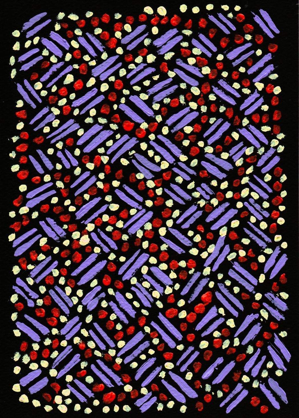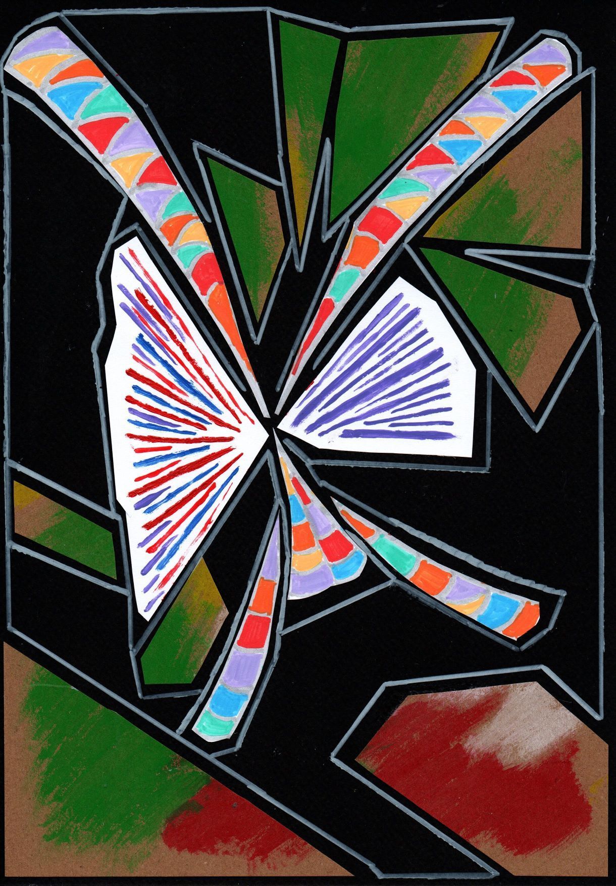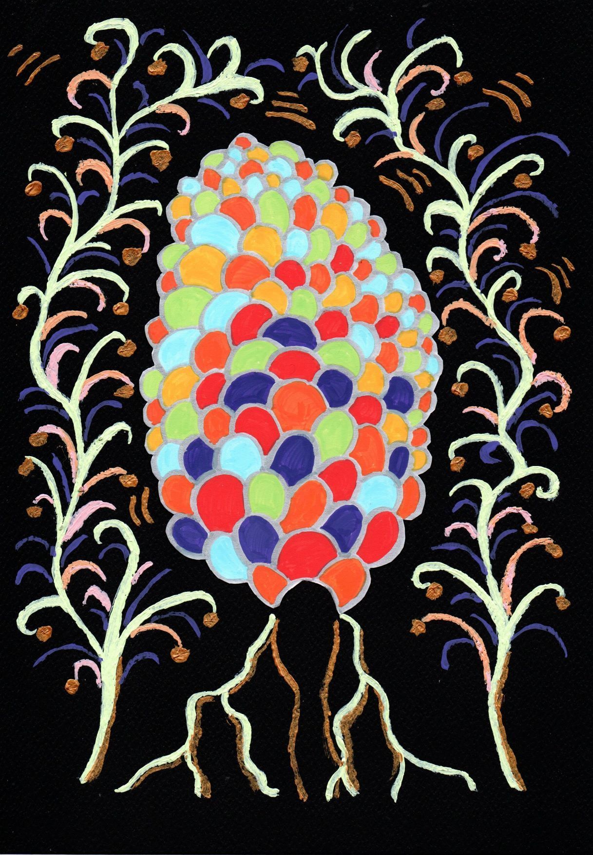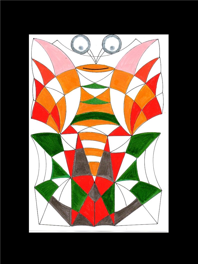 Acrylfarbe,-stifte und mit Fineliner nach eigener Fantasie gemalt auf DIN A5 Papier.