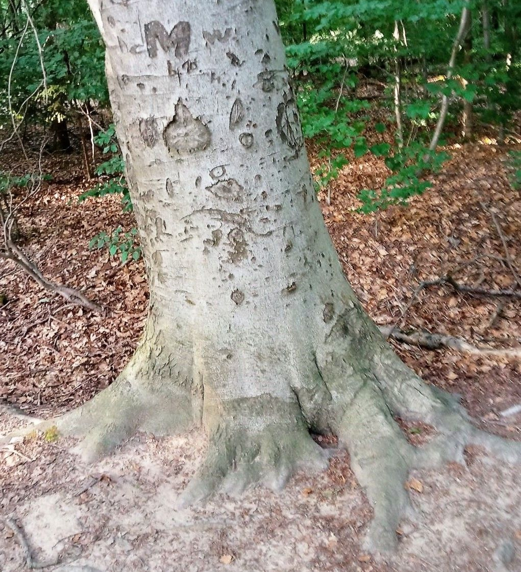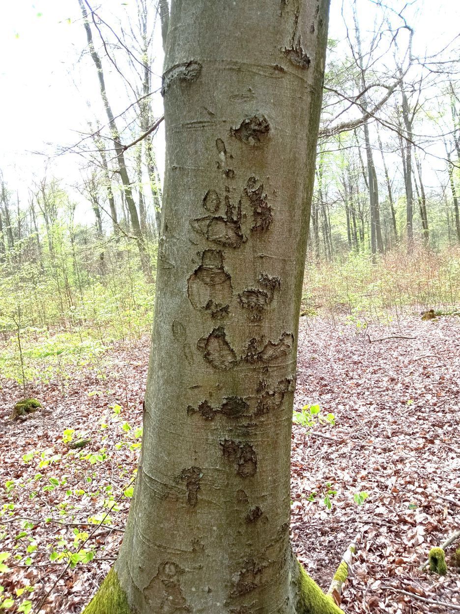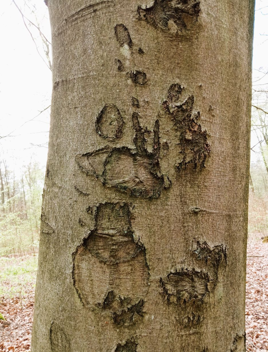Im Laufe der vielen Jahre hat die Natur Symbole in Baumrinden gezeichnet. Es gibt Gesichter, Augen und Zeichen und Schriften. Man kann es sehen und erkennen.