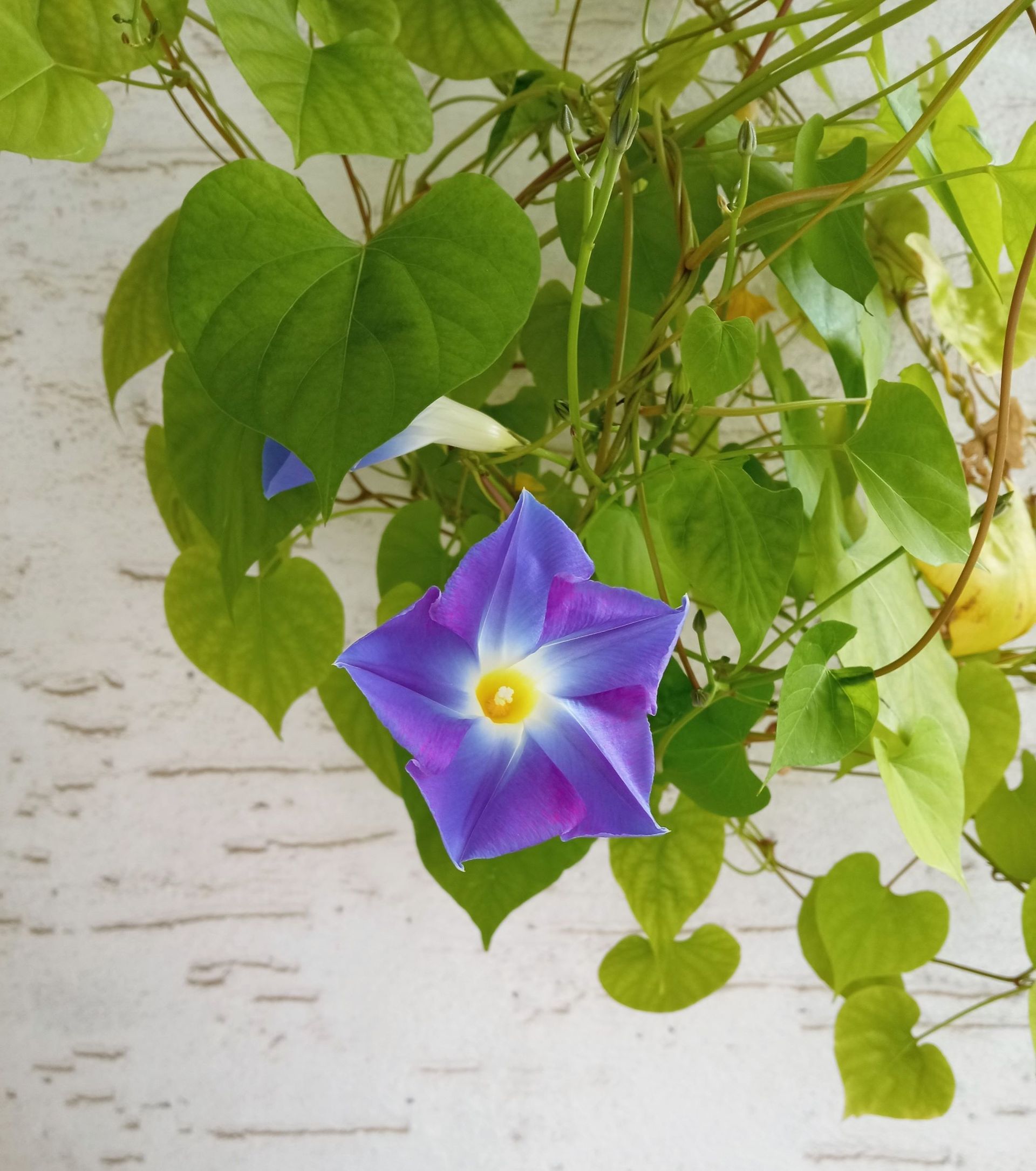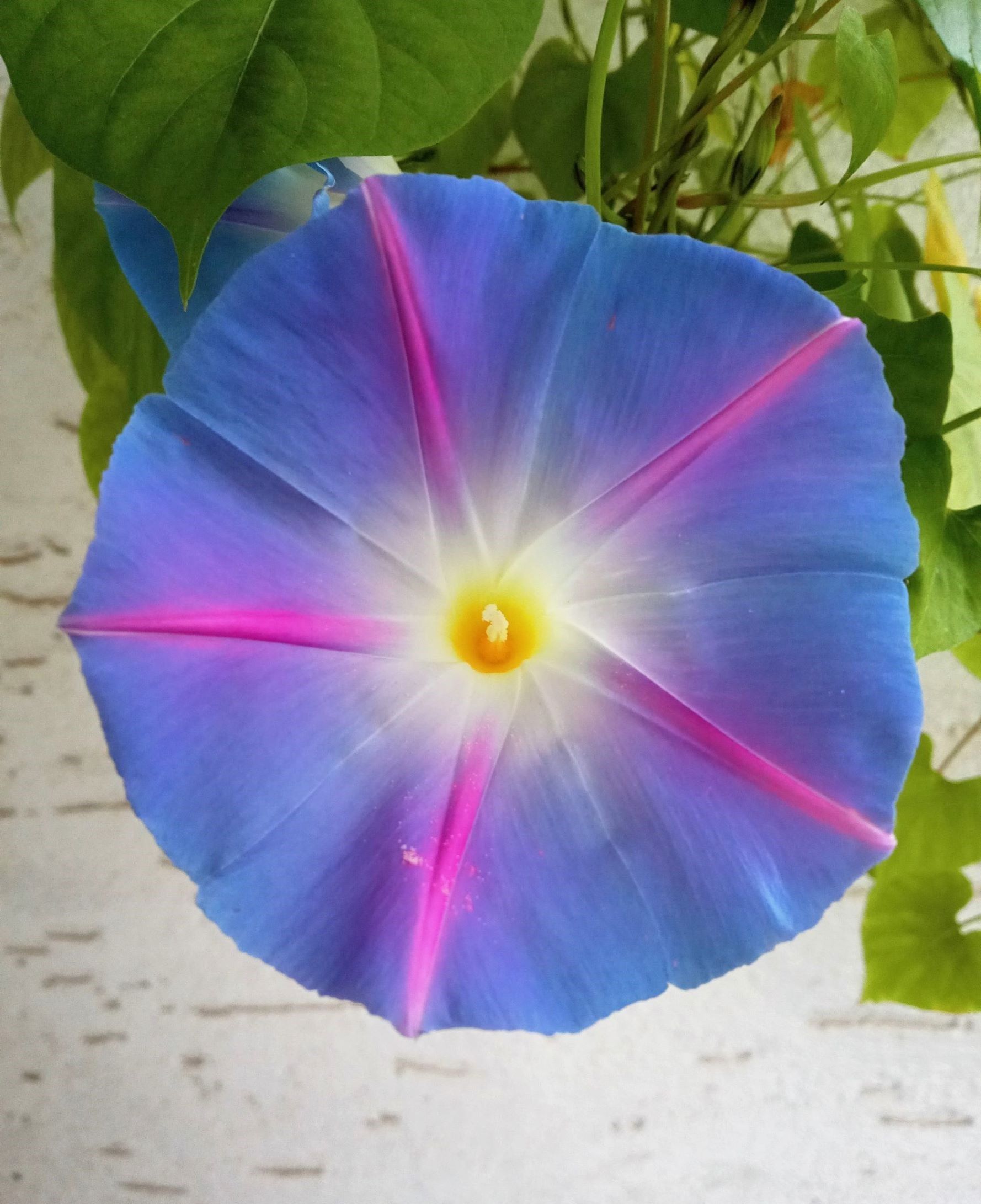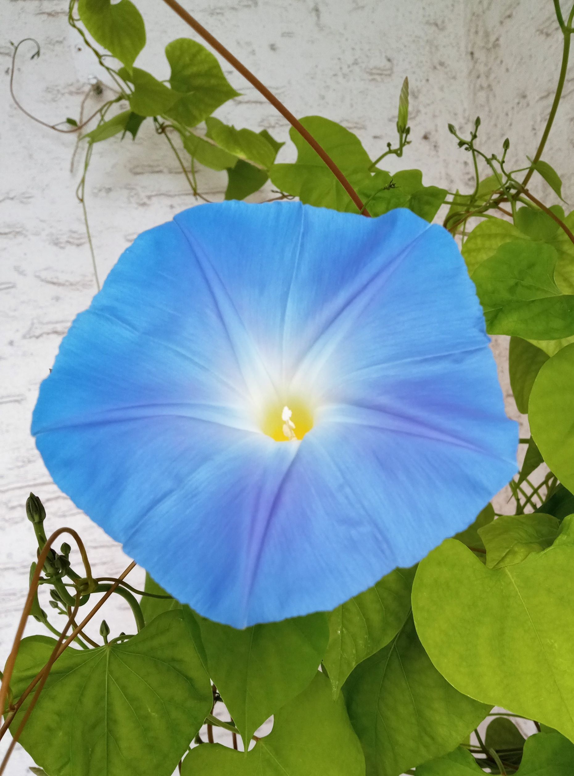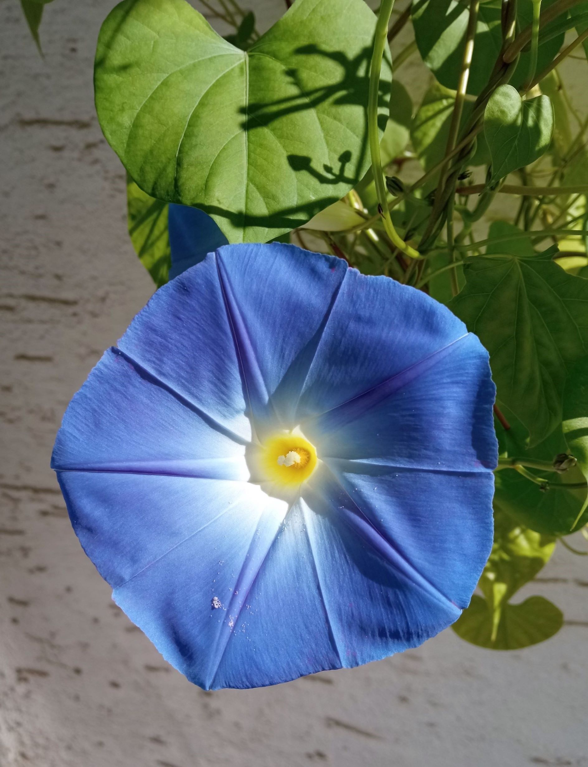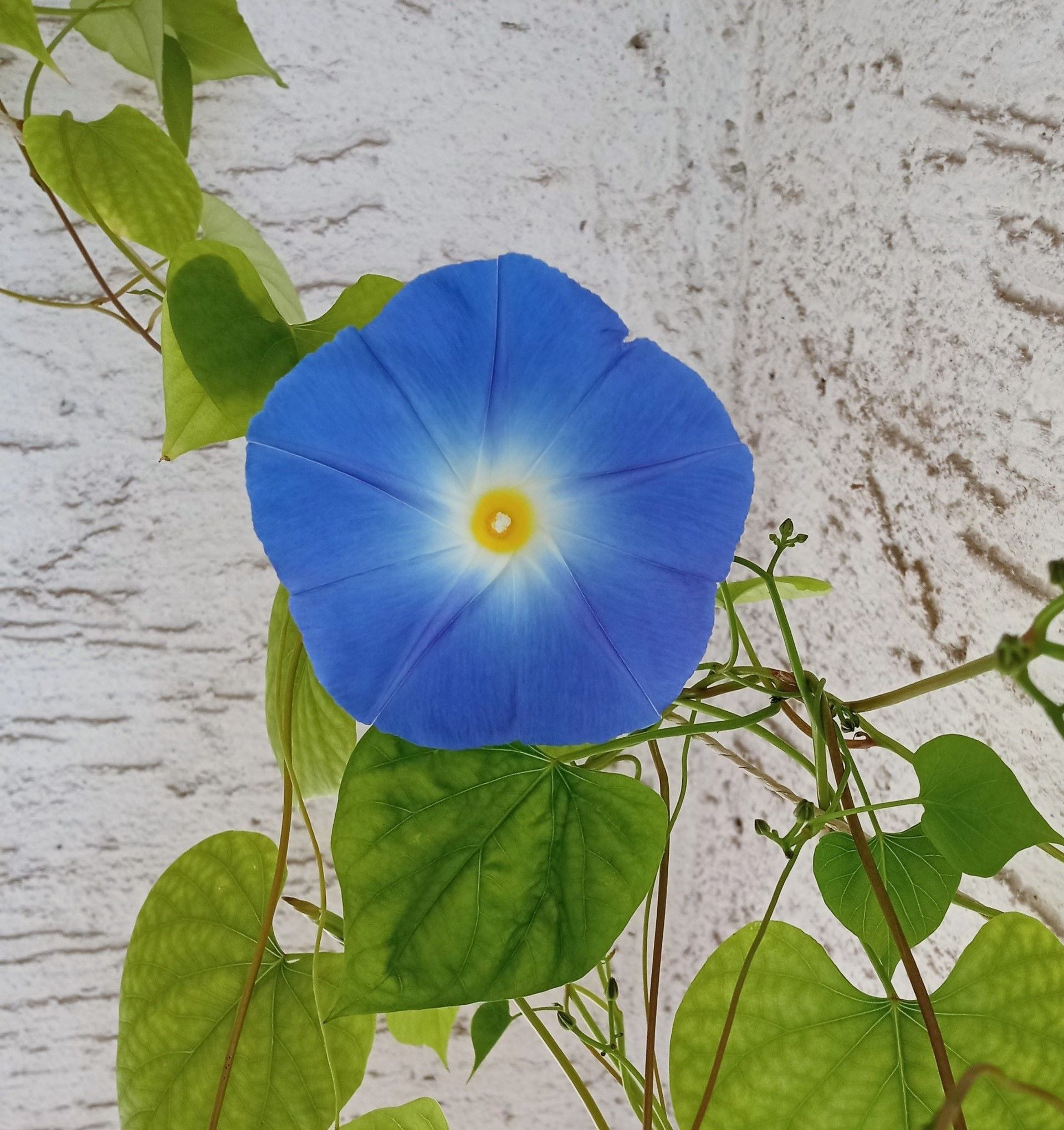 Gestern Morgen bekam ich eine Antwort in Form einer Blüte auf meinem Balkon. Wie aus dem Nichts, über Nacht, strahlte mich eine große blaue Blüte an. Eine einzige!
