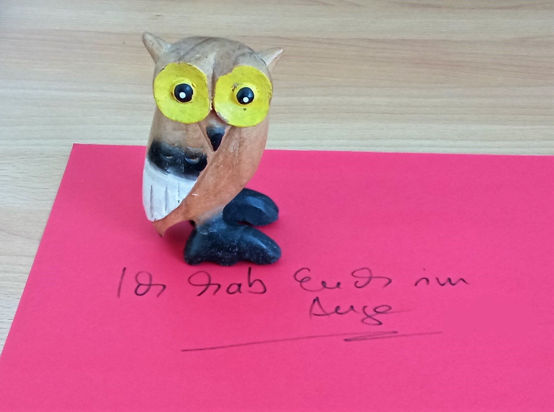 Sie beobachten die Umgebung, blinzeln nicht und bewegen sich nicht. Ich näherte mich diesen Augen und erkannte eine Figur aus Holz. Scheinbar ohne Leben.
