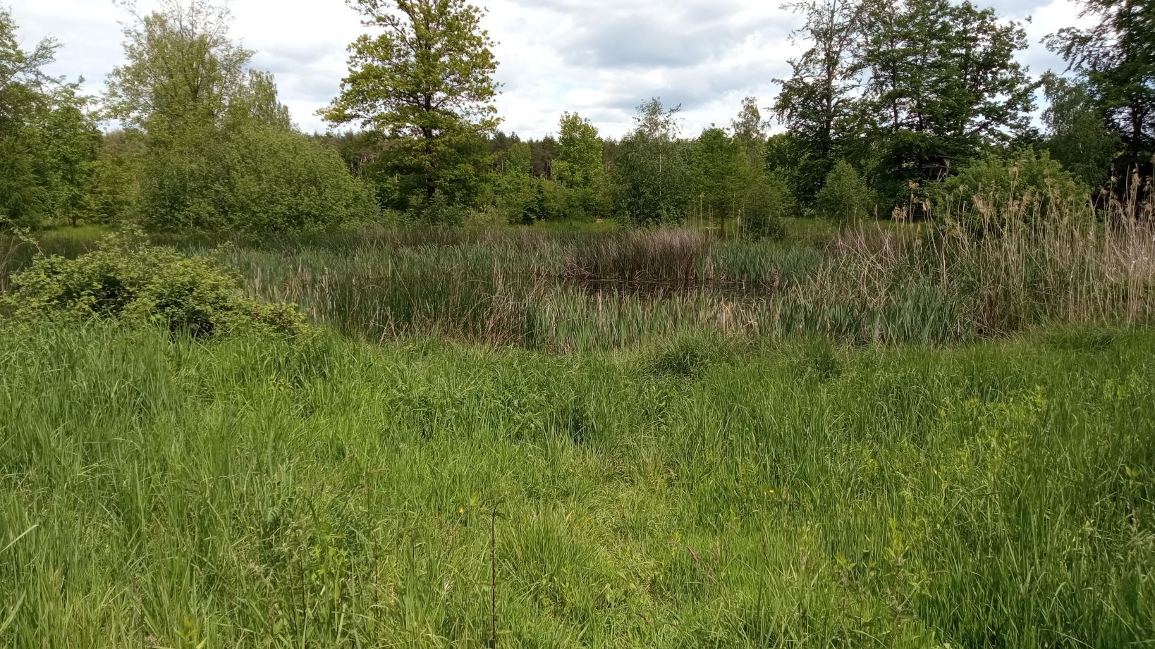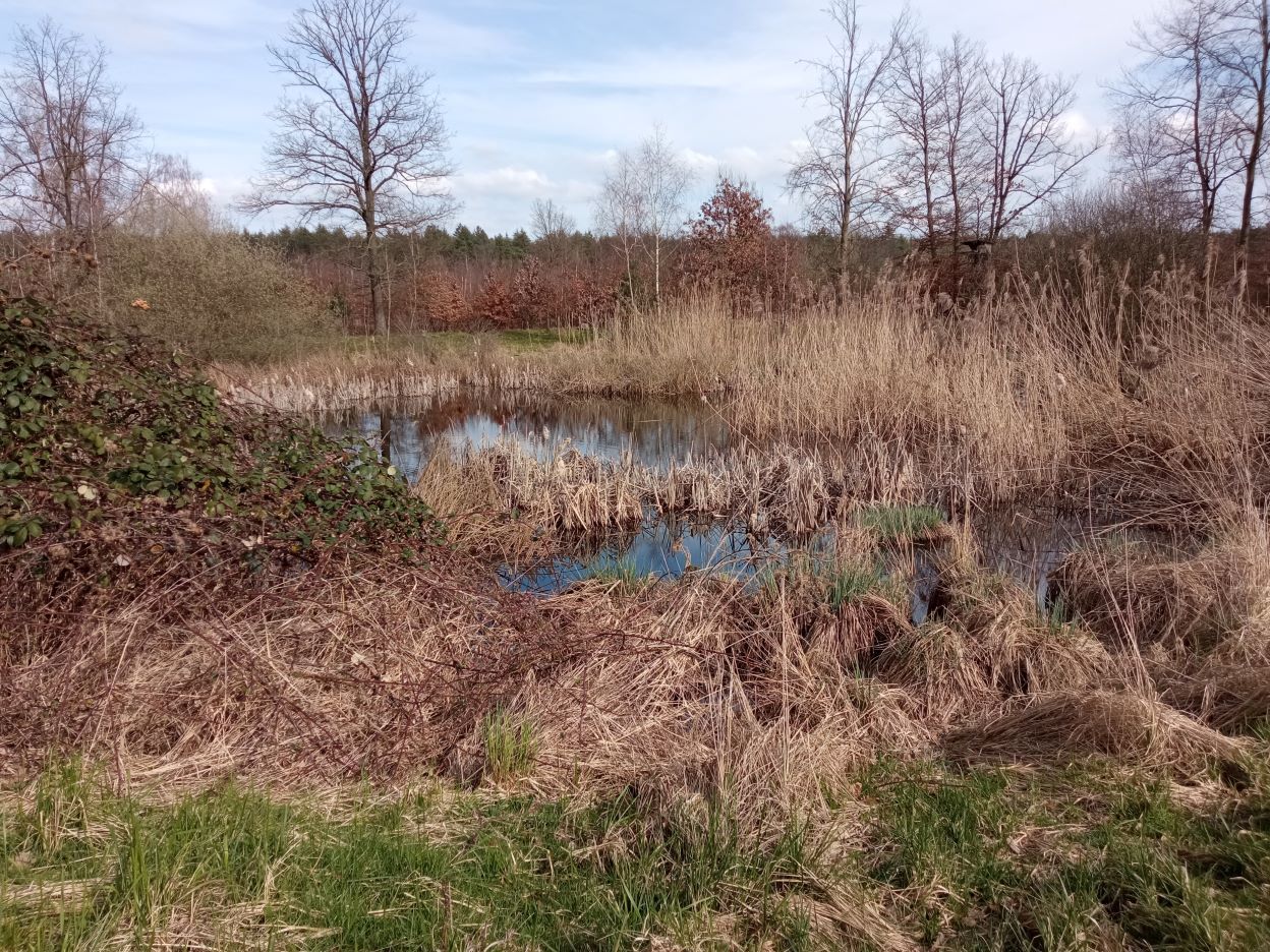 Dieser kleine Teich ist schnell zu übersehen, denn je nach Jahreszeit ist er umgeben von Schilf und hohem Gras. Aber die Geräusche sind zu hören. Ein Entenpärchen lebt dort friedlich. Sie können sich mit ihrem Nachwuchs wunderbar im hohen Gras verstecken.